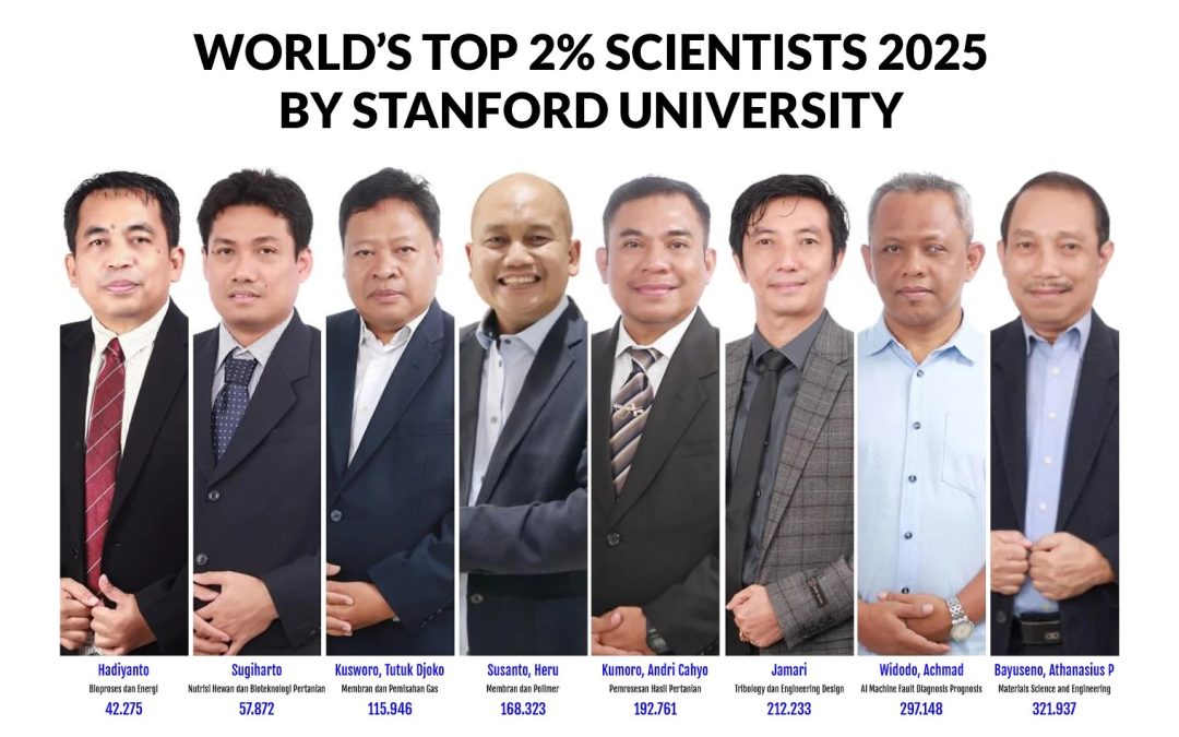 Universitas Diponegoro (UNDIP) kembali menorehkan catatan emas di panggung akademik internasional. Tahun ini, delapan ilmuwan UNDIP masuk dalam daftar 2% Ilmuwan Teratas Dunia 2025 yang disusun oleh Universitas Stanford dan Elsevier yang baru saja dirilis di laman resminya. Jumlah ini meningkat dibandingkan tahun lalu yang berjumlah tujuh ilmuwan.
